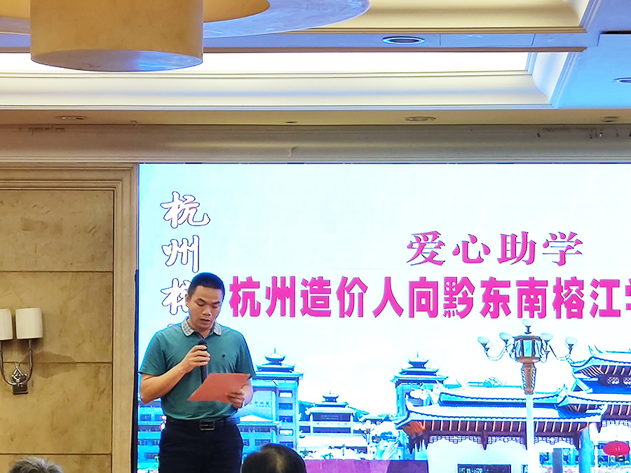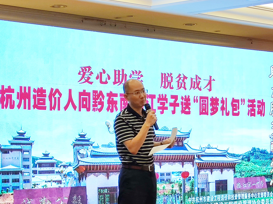 2、杭州市建设工程造价管理协会常务副会长蔡红伟介绍自对口扶贫榕江县以来,杭州市工程造价管理协会是如何开展对榕江县爱心扶贫工作的。